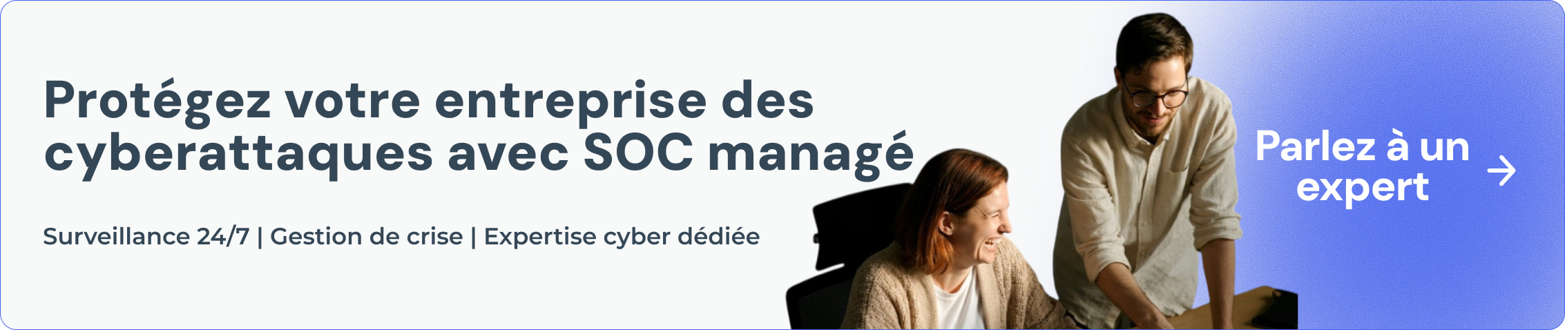 C'est pareil pour le SOC managé : une équipe d'analystes sécurise en continu vos laptops, vos serveurs et votre cloud.