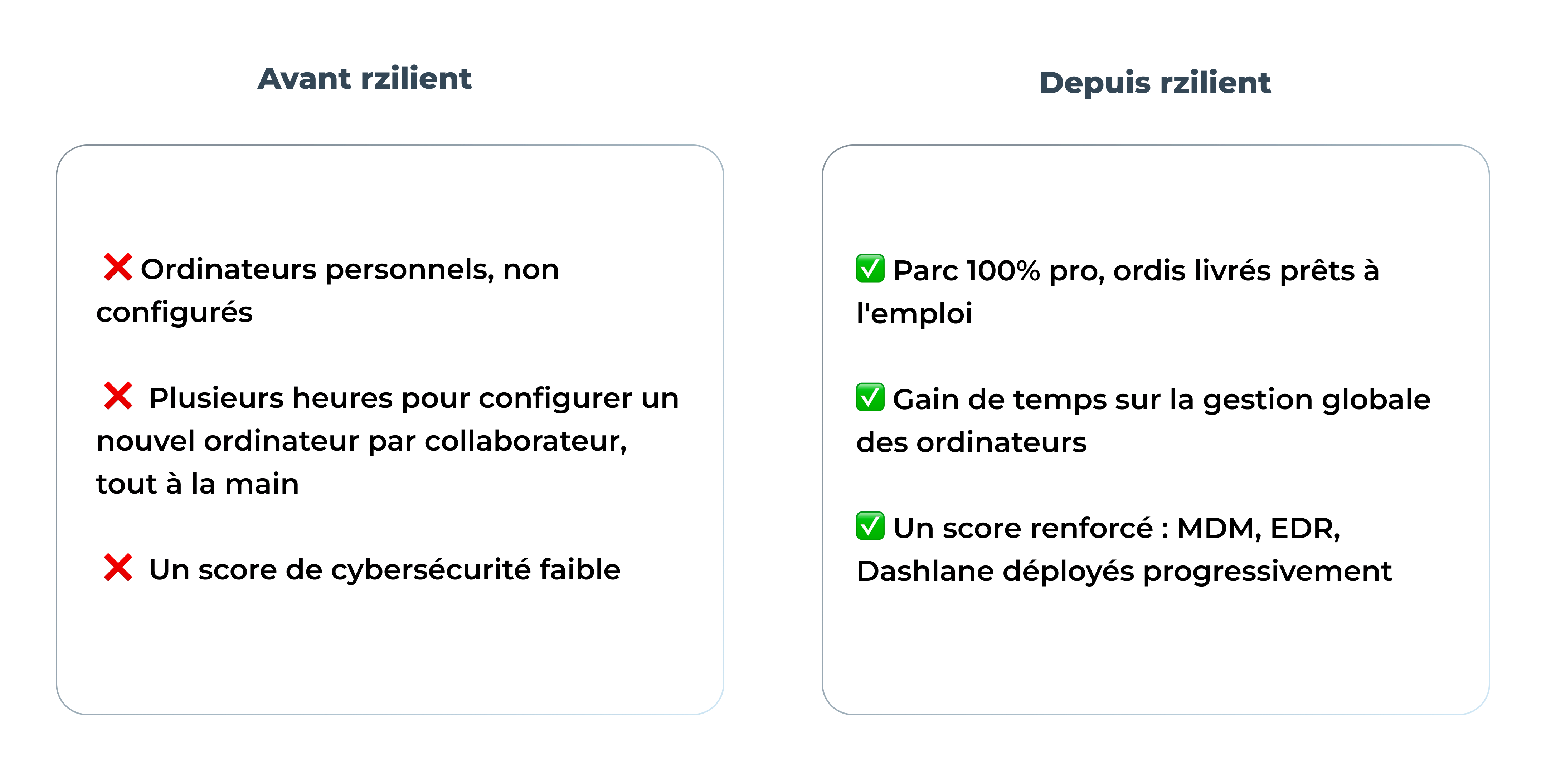 C’est dans ce contexte qu’Emma choisit de s’appuyer sur rzilient. Son objectif : structurer la gestion de la flotte informatique sans avoir à recruter un DSI à ce stade de développement.